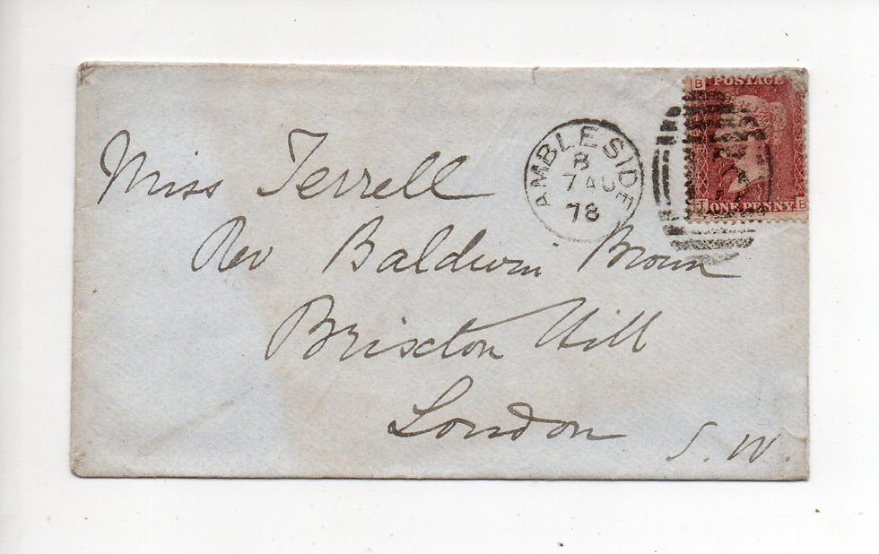 GB 1876 Penny red plt 187 on cover Ambleside cancel
